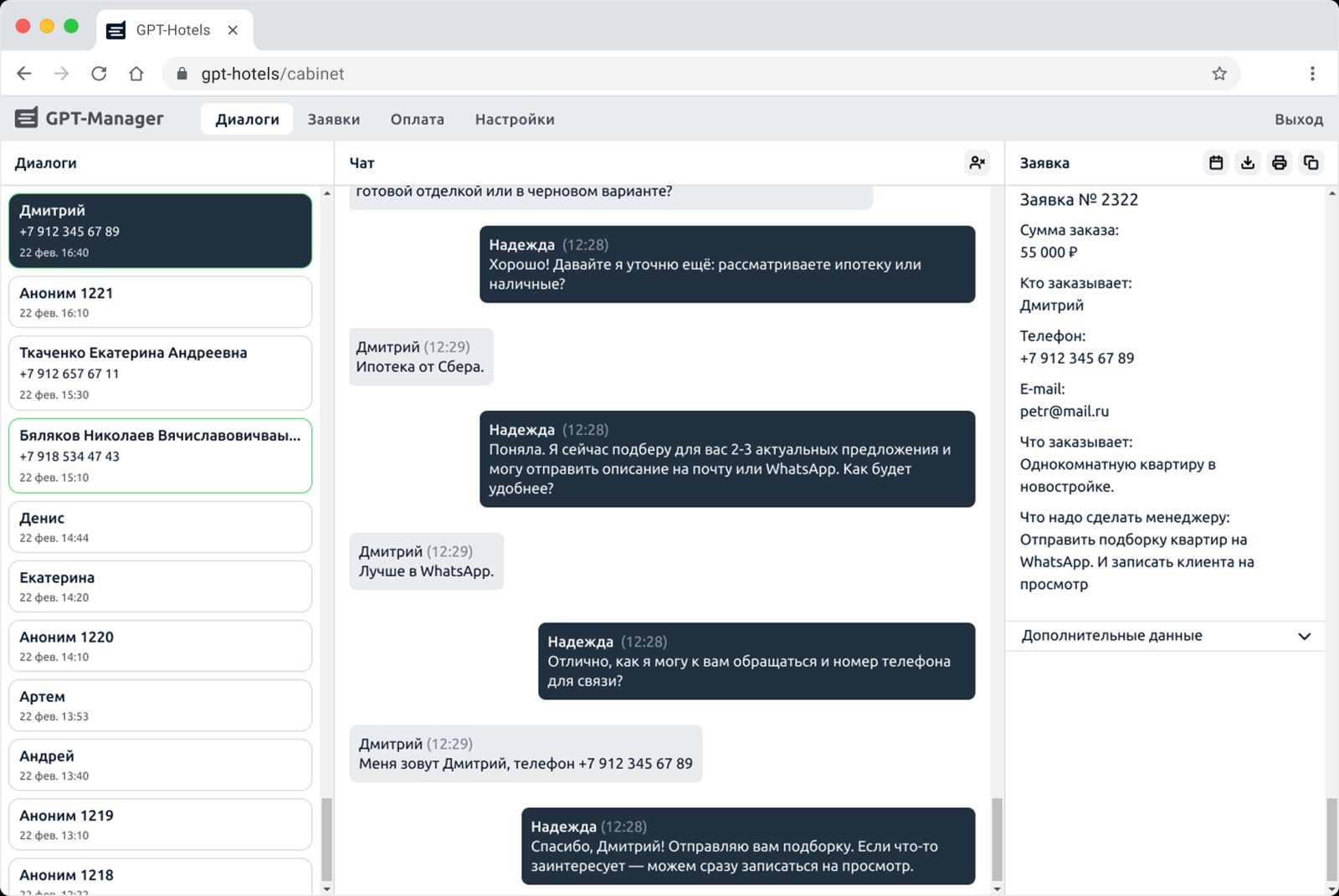 🔹 Предлагай подходящие варианты (можно демонстрационные), уточняй интерес и аккуратно веди к тому, чтобы клиент оставил контакт.